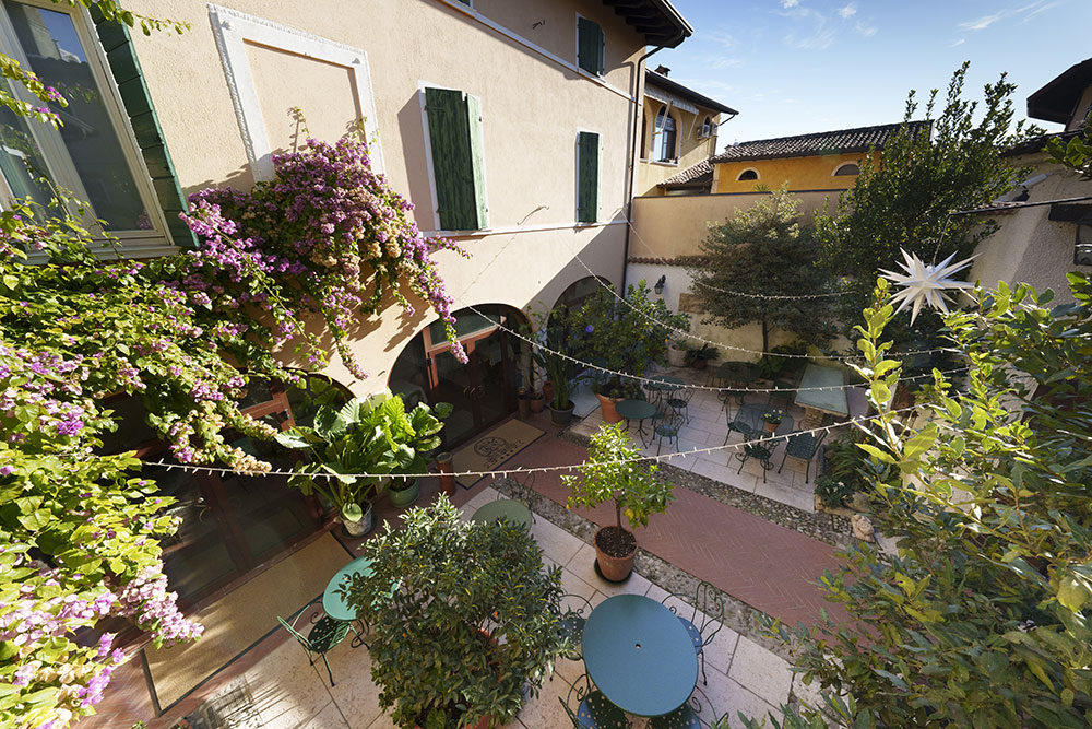 Übernachten werdet Ihr im Hotel San Filis – einer stilvollen Villa aus dem 17. Jahrhundert im Herzen von San Felice del Benaco. Der charmante Innenhof, die historische Architektur und die Nähe zum See (nur ca. 10 Gehminuten) schaffen den perfekten Rahmen für entspannte Gespräche und echtes Dolce-Vita-Gefühl.