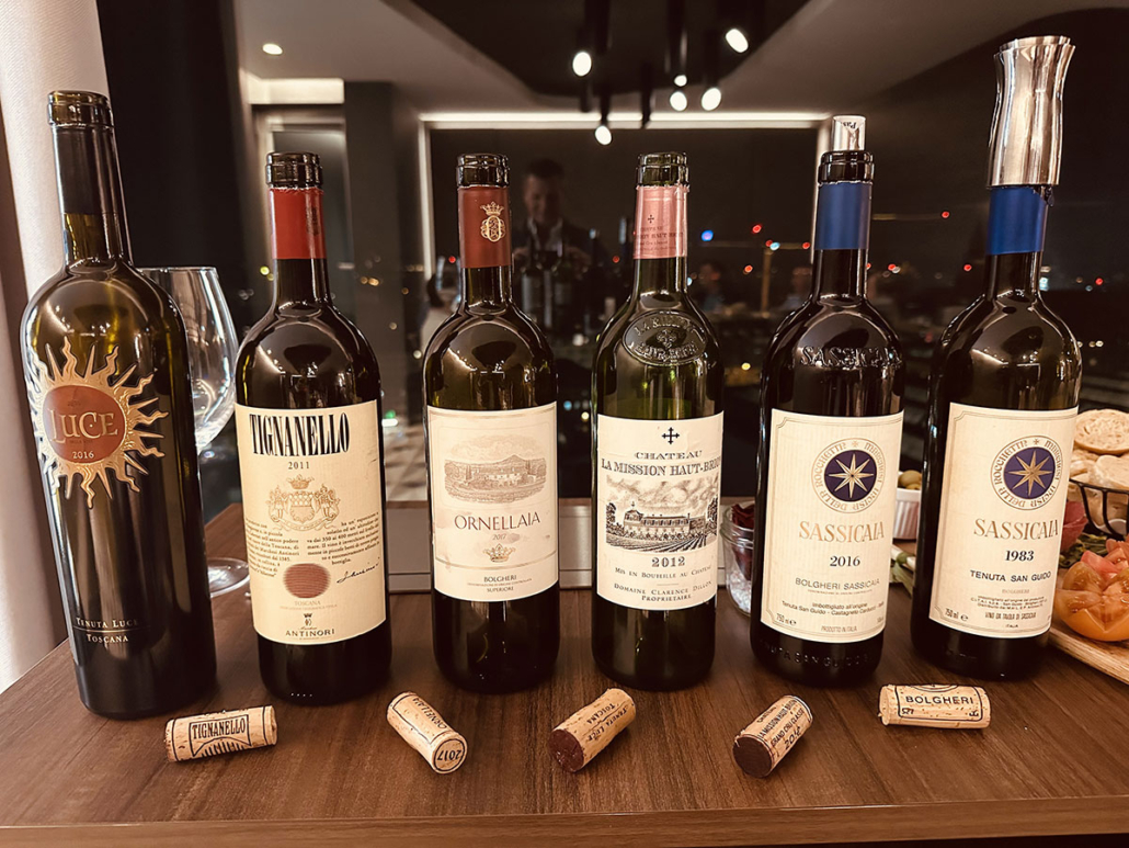 Wir verkosten insgesamt 6 Weine auf höchstem Niveau. Entdeckt die Eleganz toskanischer Rotweine aus Bolgheri und die Exzellenz eines Premier Grand Cru Classé aus Bordeaux.