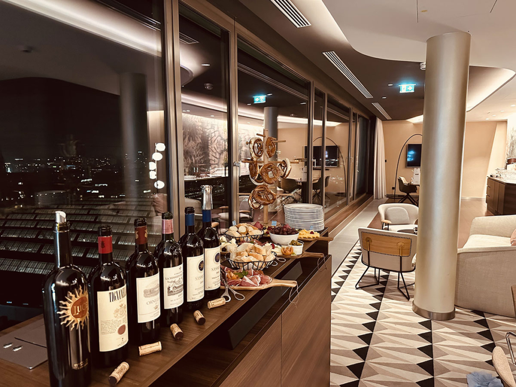 Das Event findet im SKY16 statt – einer außergewöhnlichen Location hoch über München. In rund 95 Metern Höhe genießt ihr einen spektakulären Blick über die Stadt bis hin zu den Alpen. Der moderne 16. Stock des NH Collection München Bavaria zählt zu den markantesten Aussichtspunkten der Innenstadt. Ein exklusiver Rahmen, der diesen besonderen Abend perfekt abrundet.